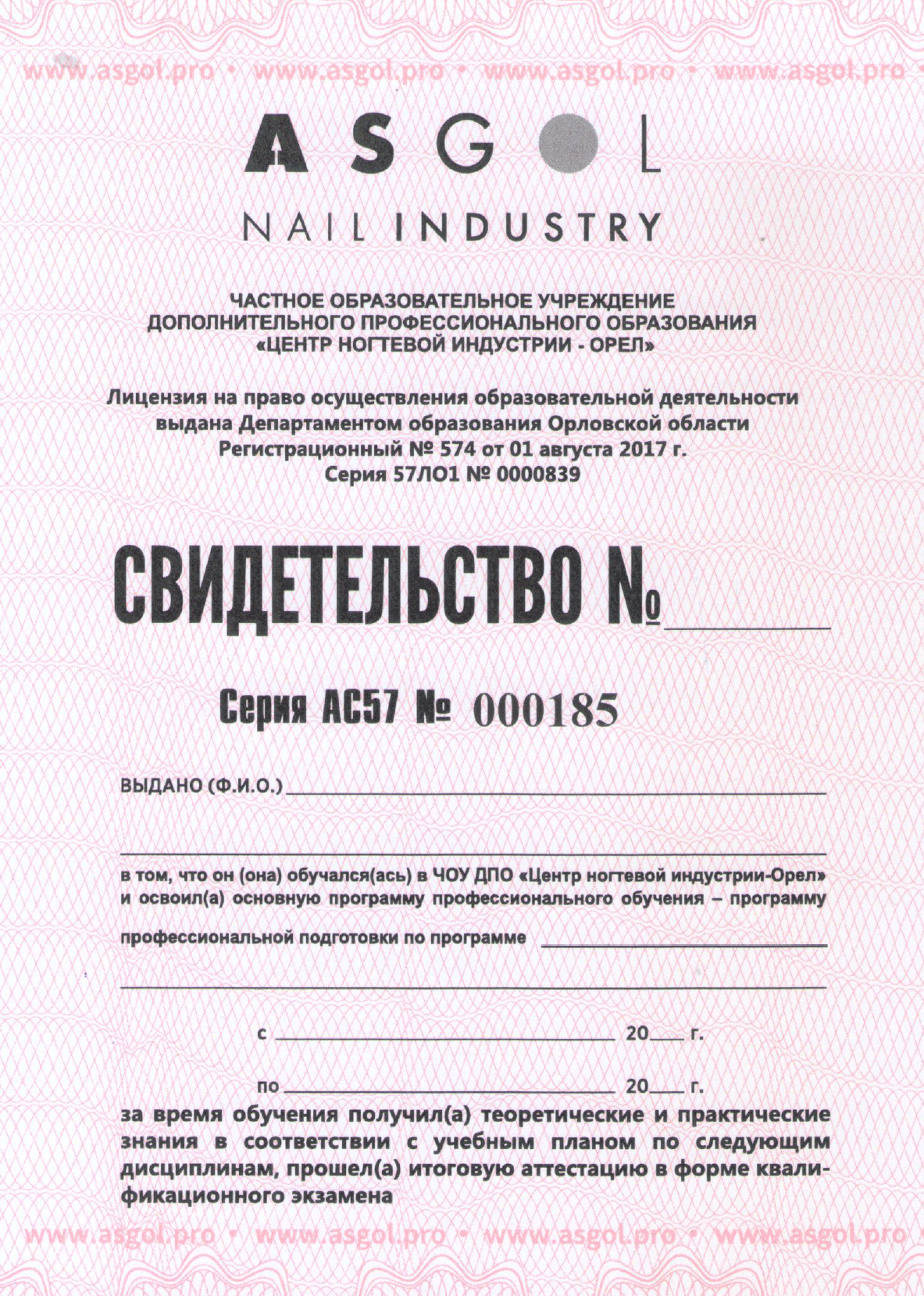Свидетельство установленного образца с присвоением квалификации "Специалист по маникюру", в соответствии с ФЗ №248 и ГОСТ Р 58091-2018